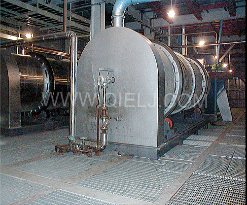軟化工序:采用YRHW系列臥式軟化鍋,通過進料絞龍進入軟化轉(zhuǎn)筒內(nèi),隨著轉(zhuǎn)筒的轉(zhuǎn)動,物料得到不斷的翻動,由于轉(zhuǎn)筒內(nèi)裝有加熱列管,列管內(nèi)通有蒸汽,因此物料在隨著轉(zhuǎn)筒不斷翻動的同時,將大豆加熱到50-70℃,使其充分軟化,提高大豆原料的塑性,使軋胚機軋出的胚薄而不碎,從而提高浸出效果。轉(zhuǎn)筒帶有進料端高、出料端低的傾角,根據(jù)物料的軟化情況,通過調(diào)速裝置調(diào)節(jié)轉(zhuǎn)筒的轉(zhuǎn)速,可以控制物料在轉(zhuǎn)筒內(nèi)的軟化時間,使物料的軟化效果達到理想狀態(tài)。