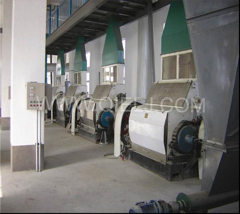 7.我公司還在軋胚工序的后面加上大豆膨化工序,對豆胚進行膨化,以進一步破壞油料細胞的結(jié)構(gòu),大大提高產(chǎn)量,得到受飼料廠家歡迎的膨化粕。